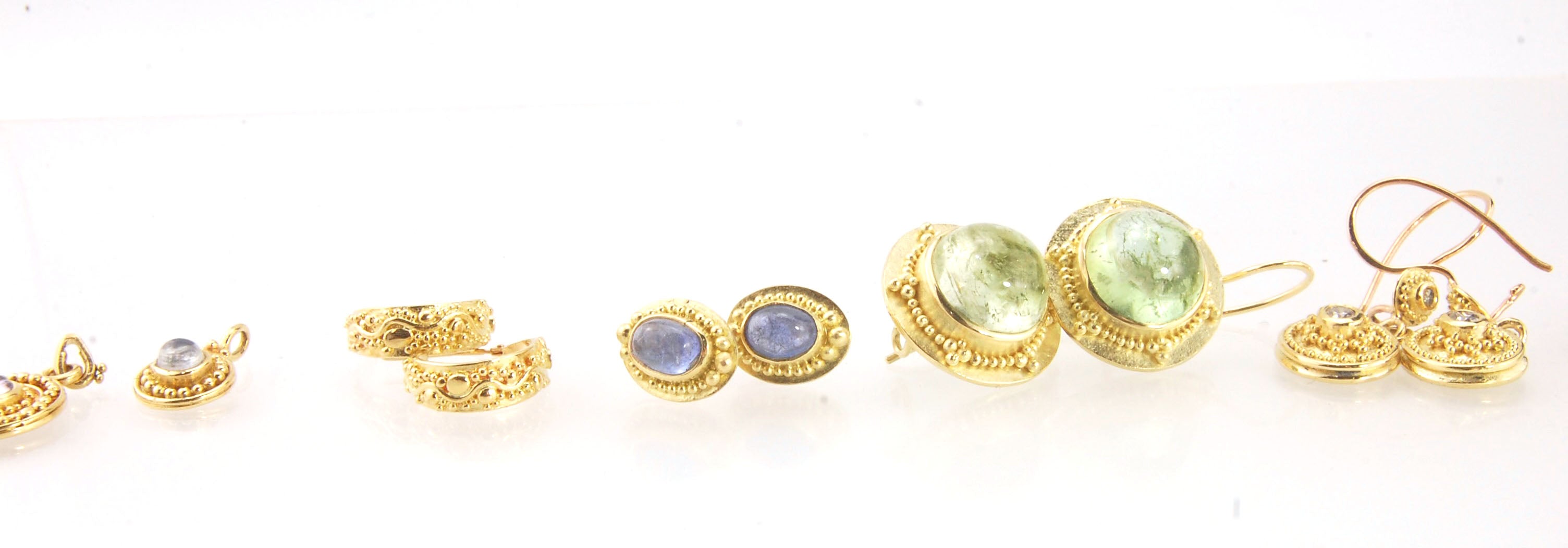 Tanzanite Oval Cabochon 18k Gold Granulated French Safety clasp Earrings