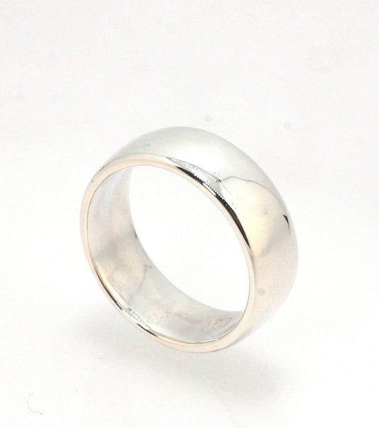 Real Wide Flat Half Round Band Ring in Sterling Silver or 14k gold