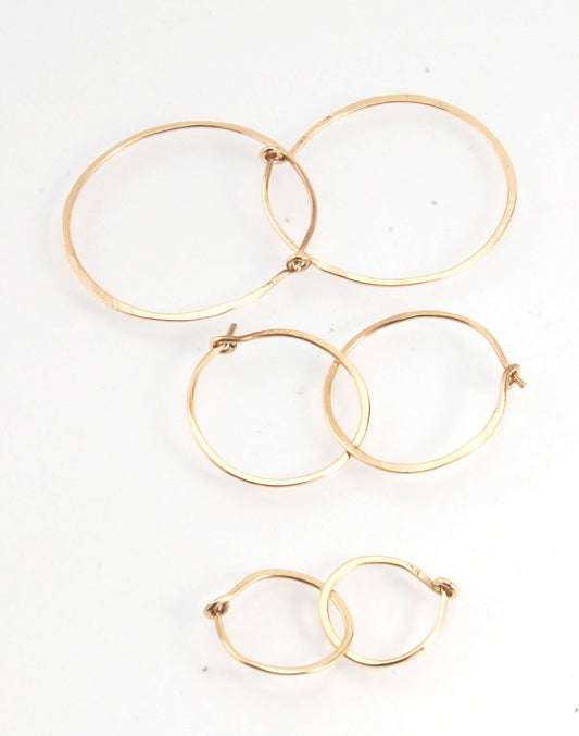 Hammered 14k Yellow Gold Hoops - Small, Medium and Large