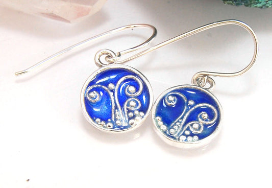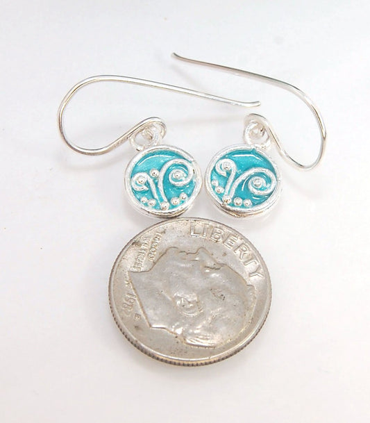 Enameled Sterling Fern Earrings -Circle -Small