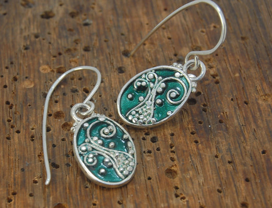 Enameled Sterling Fern Earrings -Oval -Medium-Choice of 8 colors
