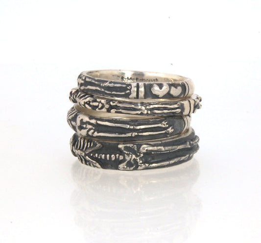 Oxidized Memento Mori Skeleton Ring in Sterling -2.7mm-5.5mm - Choose from 4 Designs