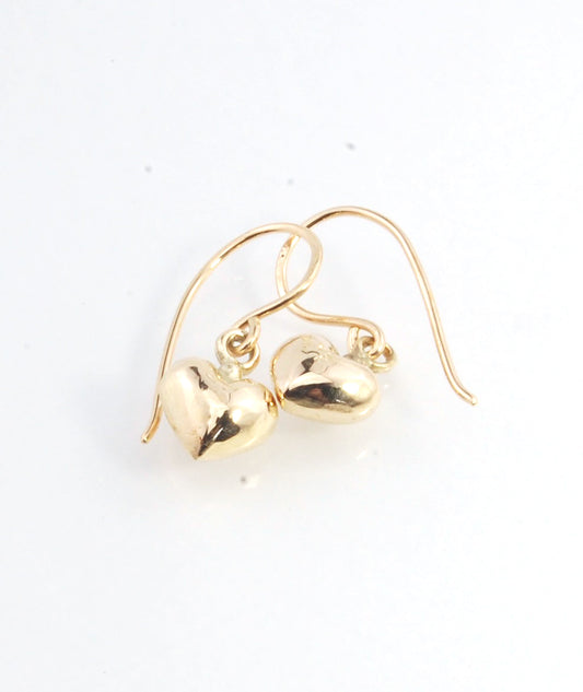 Puffy Heart Dangles in 14k Yellow Gold or Sterling Silver - Large and Small