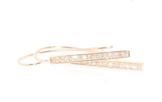 Long Diamond Earrings with french hook and clasp - 14k yellow gold