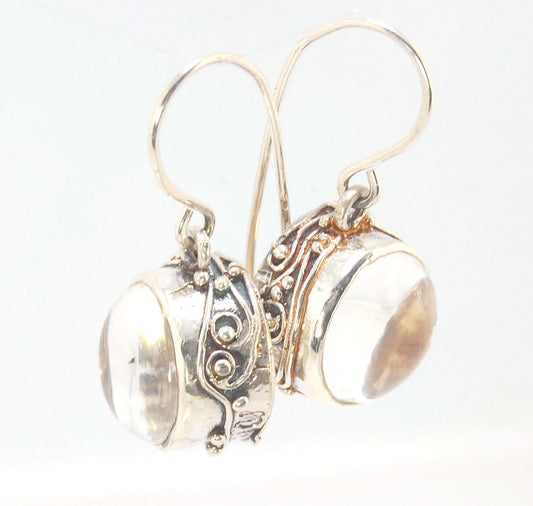 Clear Quartz Swirled Earrings with French Hook in Sterling - Large - 15mm