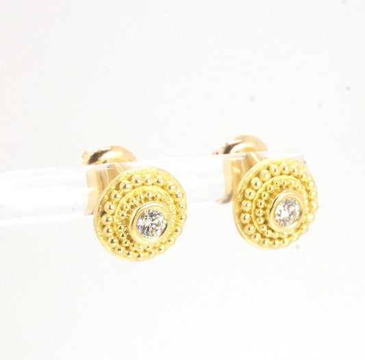 Diamond Disc Post Earrings - 18k Gold Granulation with 14k screw backs