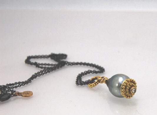 Baroque Grey Pearl with 18k gold Granulation and a Rosecut Diamond