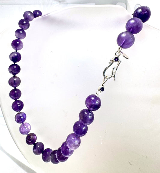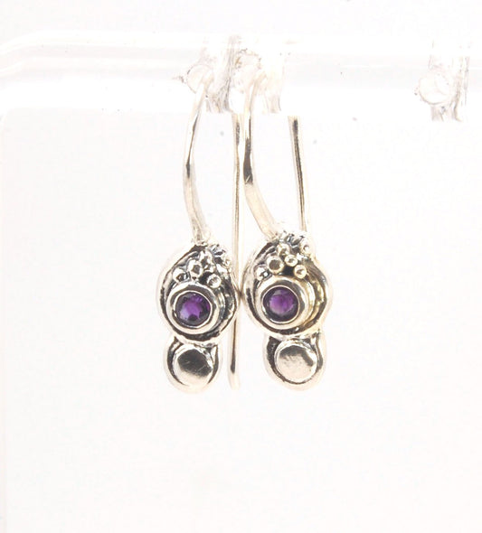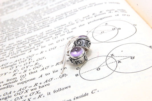 Oval Amethyst Earrings in Swirled silver bezel setting with french hook