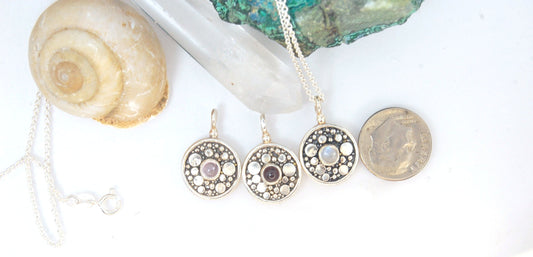 Cluster Charm in Sterling Silver with Moonstone, Iolite, Amethyst, or Garnet