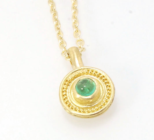 Emerald Cabochon 18k gold Tiny Granulated Disk Pendant