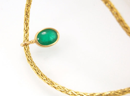 Emerald Cabochon on Handmade Woven 18k gold chain