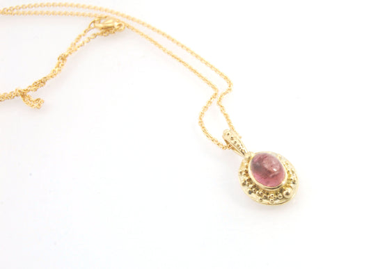 Tall Pink Tourmaline Cabochon 18k Pendant