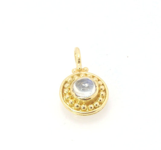 Tiny Round Rainbow Moonstone 18k gold Granulated Pendant