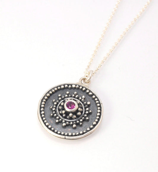 Pink Tourmaline Granulated Disk PendantRegular price $190.00 USDRegular priceUnit price / per-