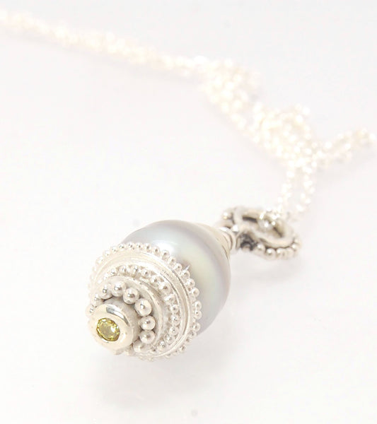 Grey Baroque Pearl with Fine Silver Granulation and Yellow SapphireRegular price From $240.00 USDRegular priceUnit price / per-