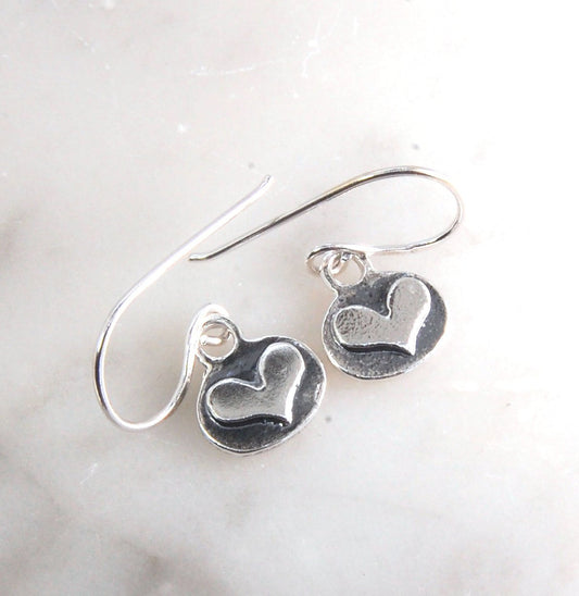 Heart Relief Oval Dangle Earrings