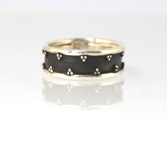 Waves Fine Silver Granulation Ring - 11mm or 8mm wide - PBS RING