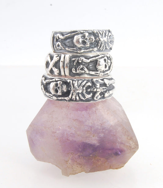 ENAMELED Memento Mori Skeleton Ring in Sterling -2.7mm-8mm - Choose from 5 Designs