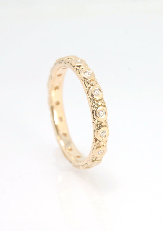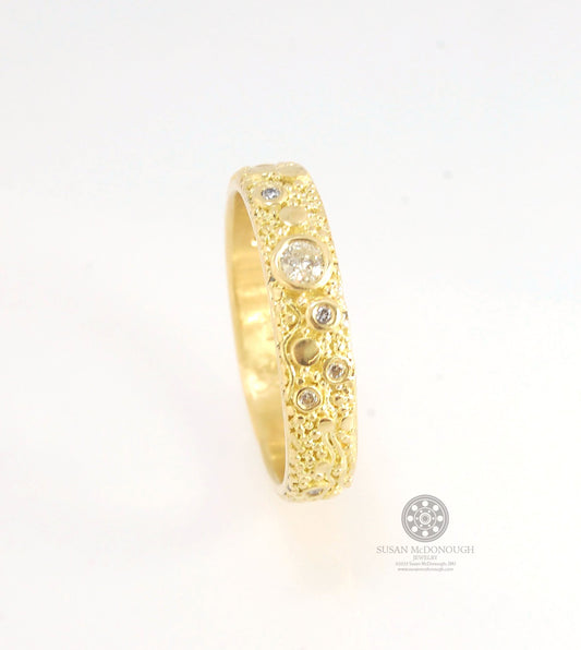 Balance and Flow Band 18k Granulation with 9 Diamonds - Made to Order