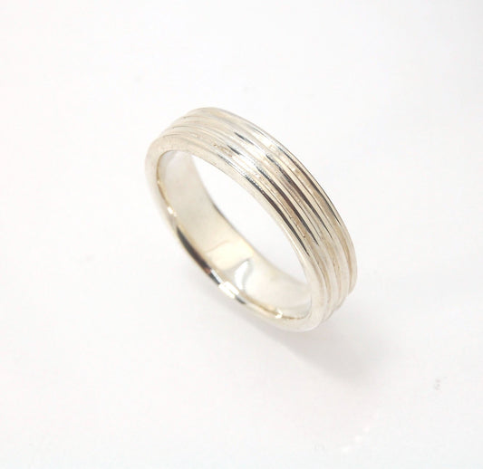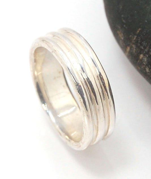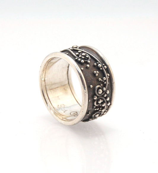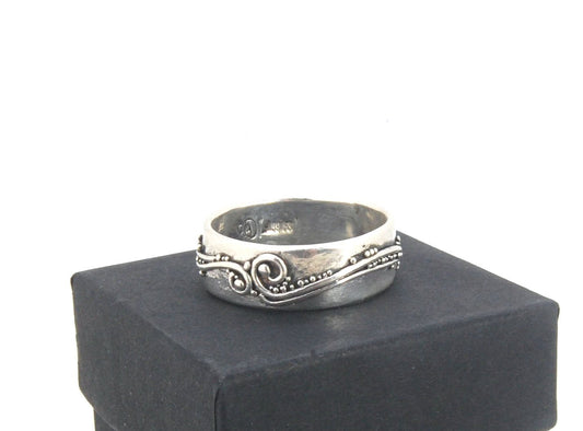 Waves Fine Silver Granulation Ring - 11mm or 8mm wide - PBS RING