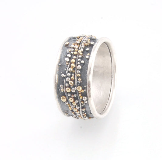 Cosmic Waves 18k and Fine Silver Granulation Ring - 7mm or 11mm wide