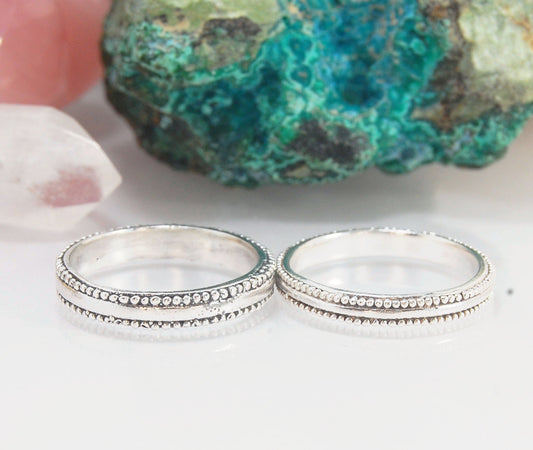 Double Row Granulation Band - Cast in Sterling Silver, 14k or 18k Gold
