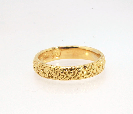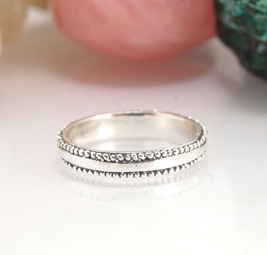 4mm Half Round Granulation Rim Band - Available in Silver, 14k Yellow or 18k yellow Gold