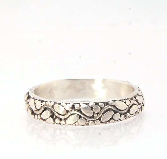 Squiggle and Dot Granulated Ring in Fine Silver or 18k Gold