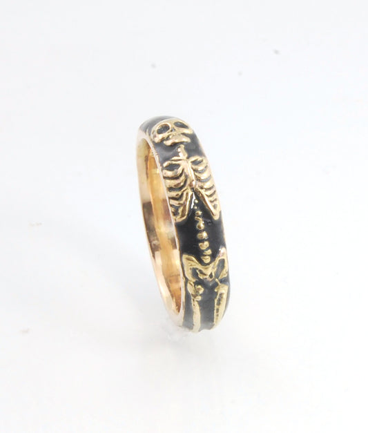 Memento Mori Skeleton Ring in 14k gold with enamel - Large - 5mm