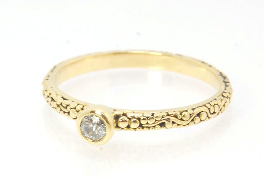 Twining Band Diamond Solitaire Ring in 18k Granulation