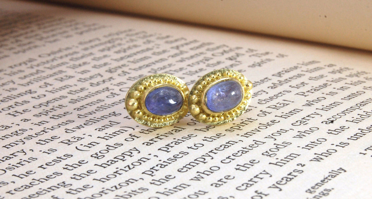 I set the cabochons or faceted stones using a microscope, a hammer, and a specially-made setting tool using traditional time-tested techniques.