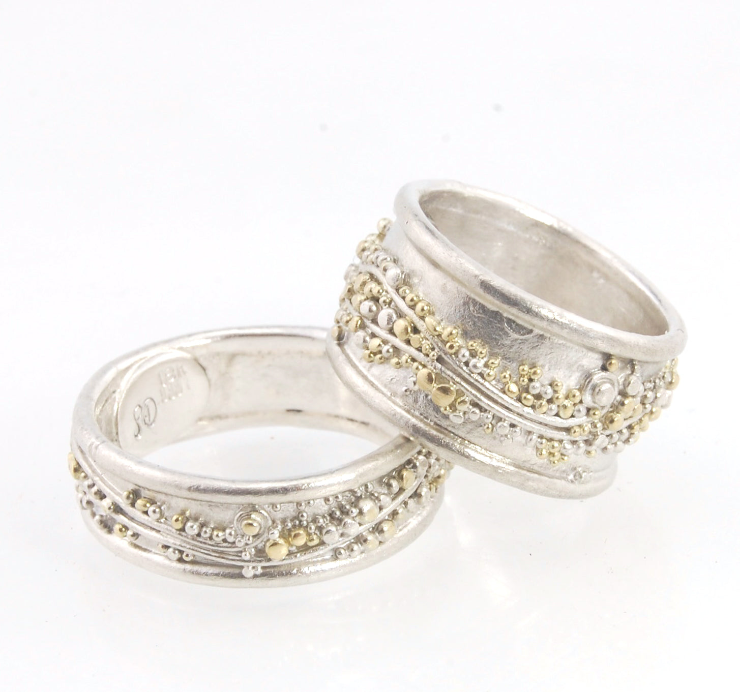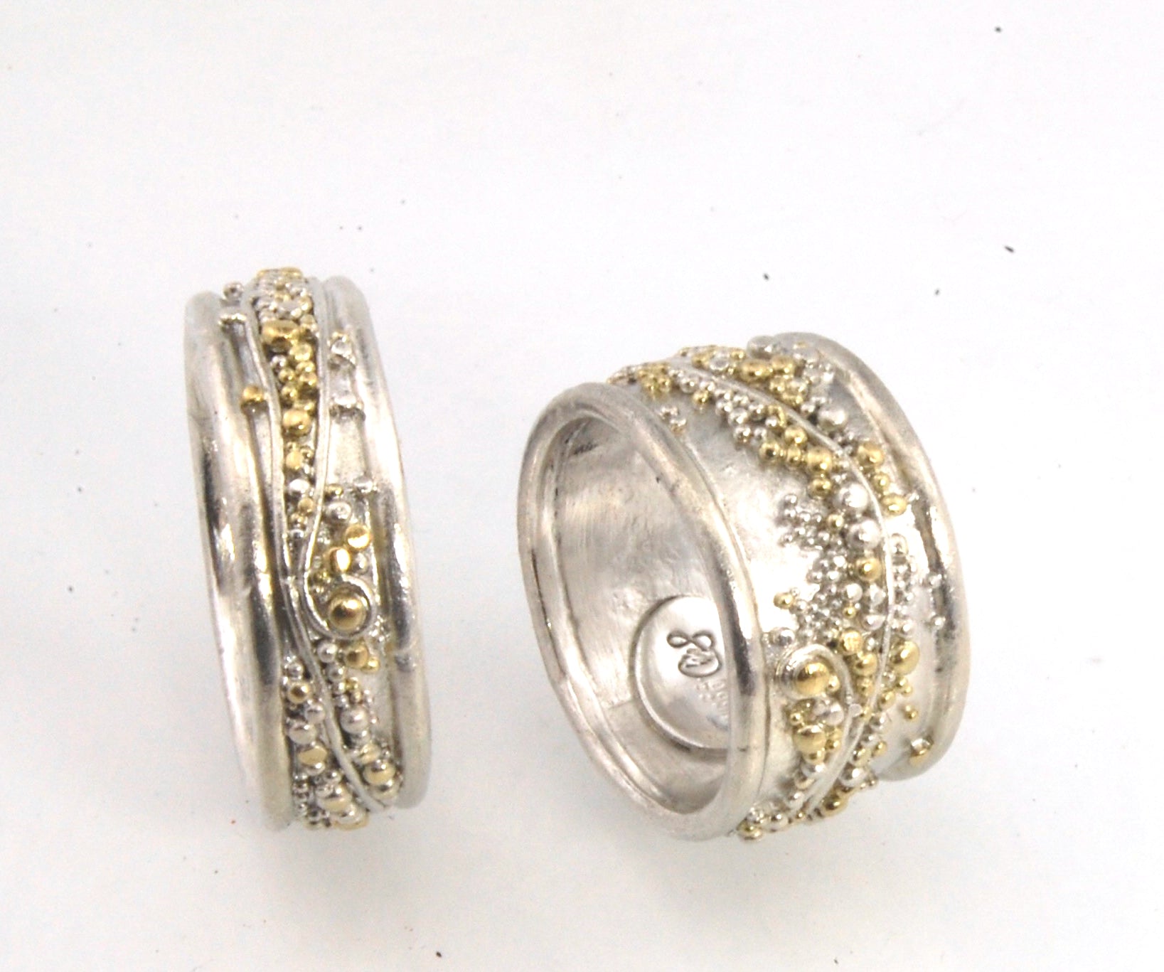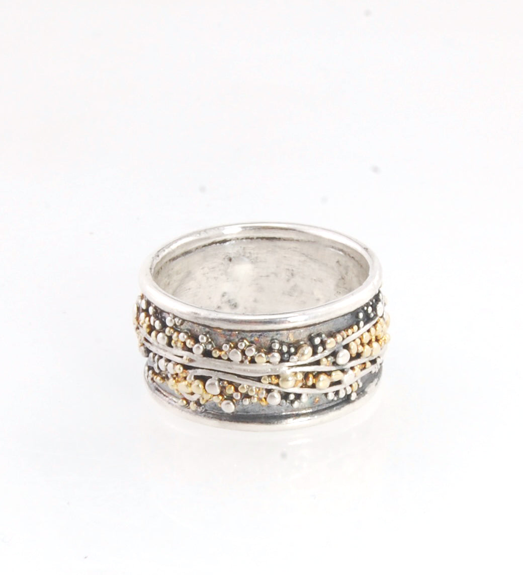 Cosmic Waves 18k and Fine Silver Granulation Ring - 7mm or 11mm wide