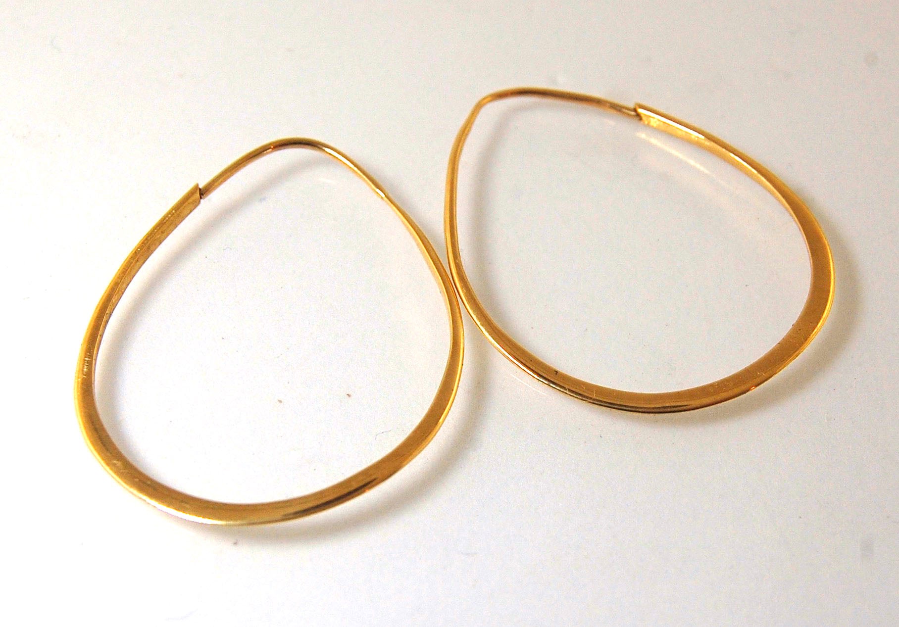 Long Hammered Lightweight 14k gold Hoops - One-of-a-Kind