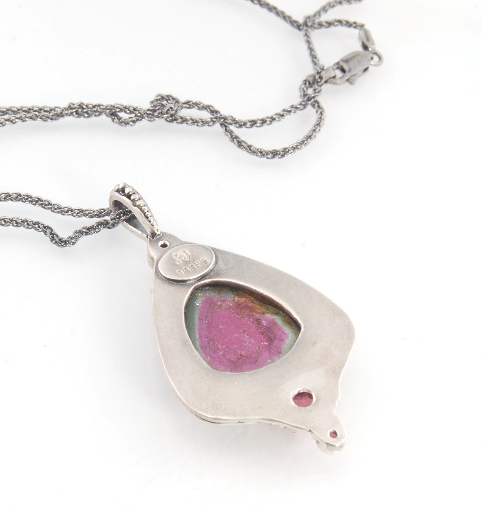Fine Silver, Watermelon Tourmaline Slice, & 2 pink tourmaline cabochons and a faceted pink tourmaline